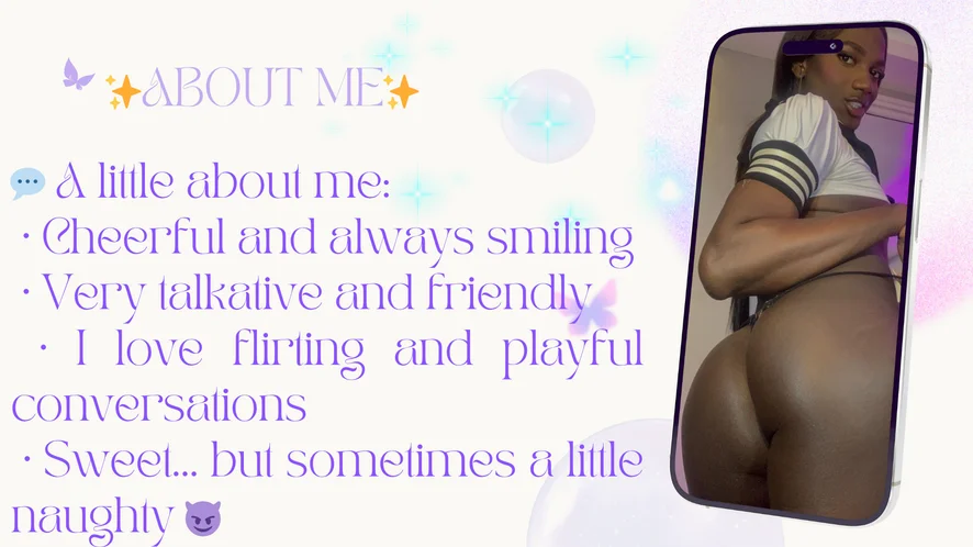 💬 A little about me: • Cheerful and always smiling • Very talkative and friendly • I love flirting and playful conversations • Sweet… but sometimes a little naughty 😈